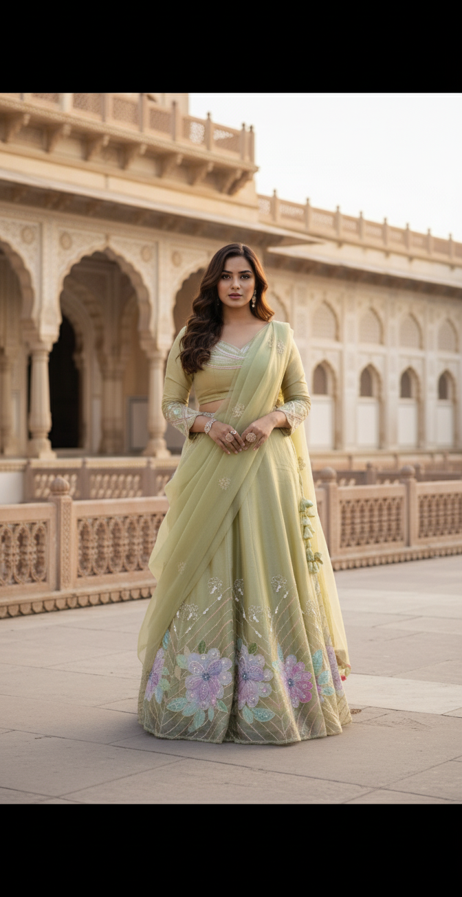 Aurora Pistachio Green Tissue Patchwork Lehenga set